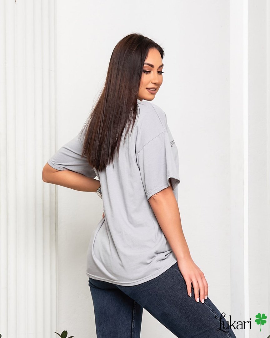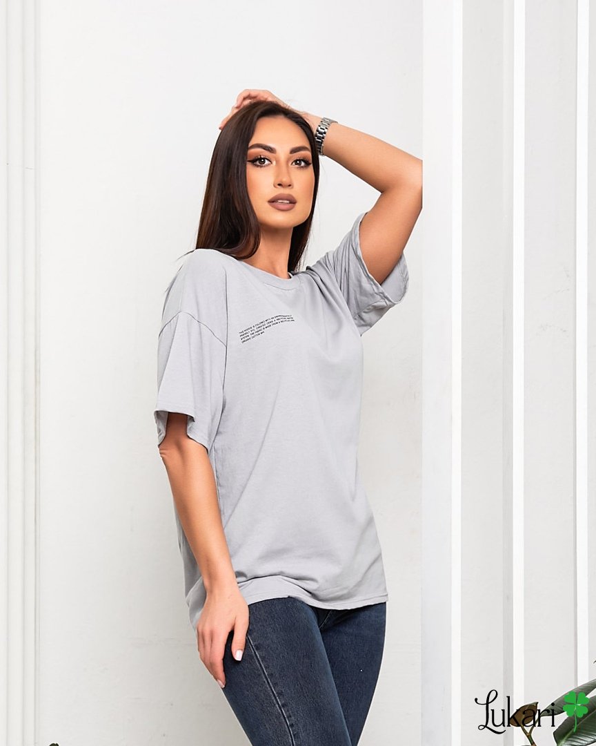 Стильная футболка из хлопковой ткани - прекрасная база для повседневных летних образов. Модель свободного силуэта позволяет телу дышать и чувствовать себя комфортно знойным днем. Футболка со спущенным коротким рукавом, круглым вырезом горловины. На груди модный качественный накат, додающий яркости и оригинальности образу. Футболка легко комбинируется с джинсами, шортами и юбками из летнего гардероба.
