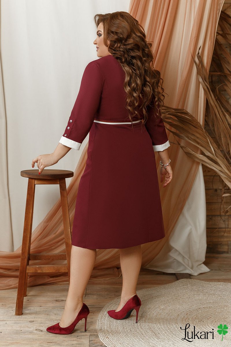 Платье большого размера деловое бордовое, креп-костюмка МРОВ 930-1