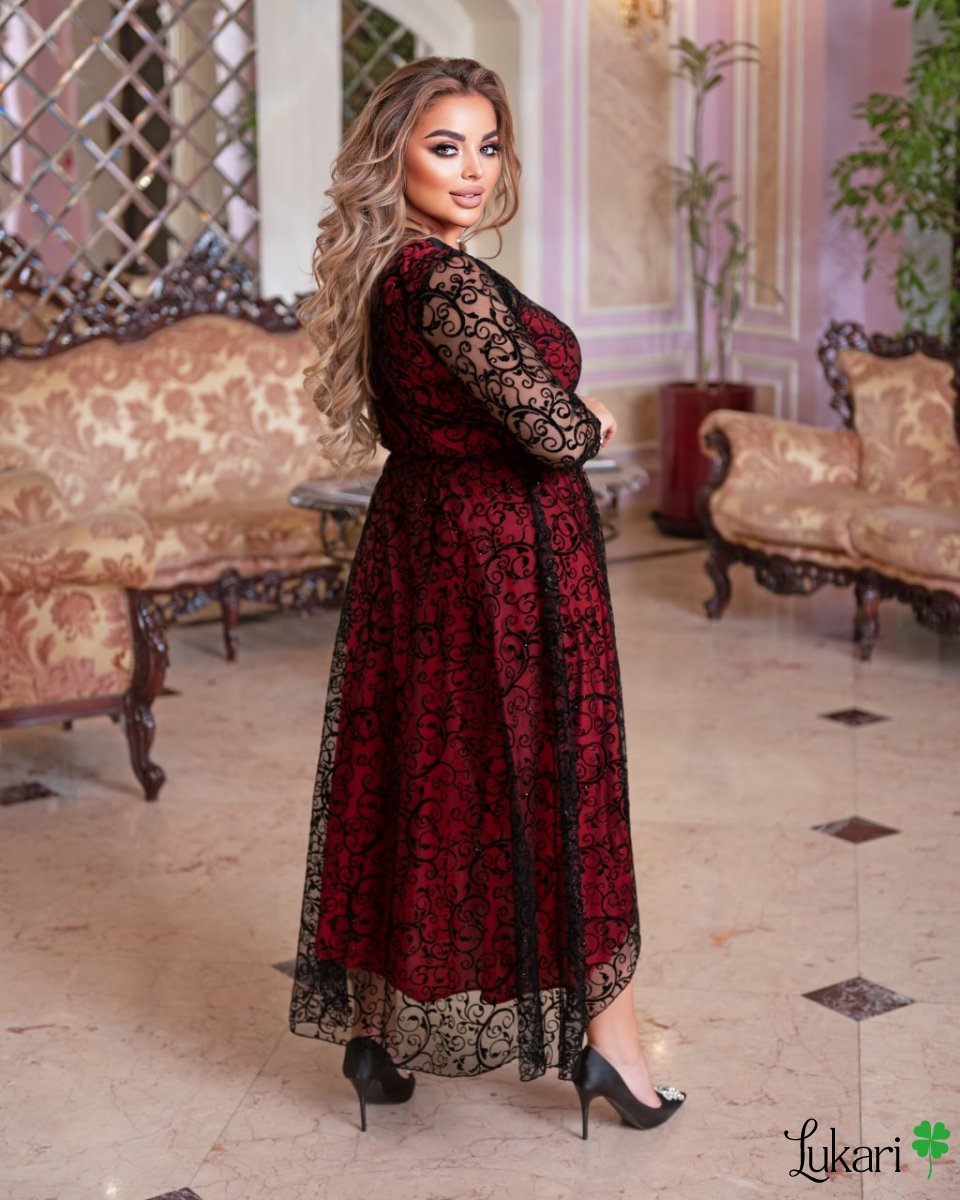 Платье вечернее красное, сетка флок ДМЛК 9780-4