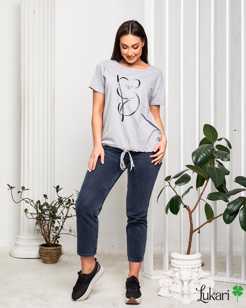 Стильна футболка з бавовняної тканини - прекрасна база для повсякденних літніх образів. Модель вільного силуету дозволяє тілу дихати і відчувати себе комфортно спекотним днем. Футболка зі спущеним коротким рукавом, круглим вирізом горловини та низом на кулісці. На грудях модний якісний накат, додають яскравості та оригінальності образу. Футболка легко комбінується з джинсами, шортами і спідницями з літнього гардеробу.