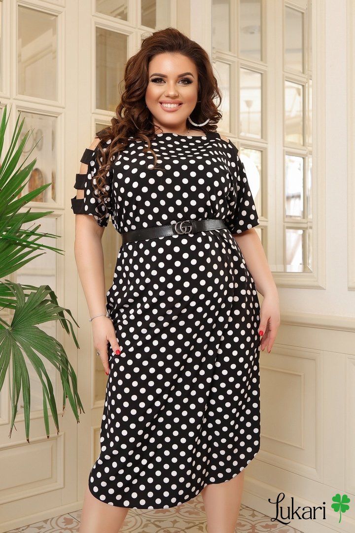 Плаття великого розміру чорний горох, софт ДМЛК 065-3