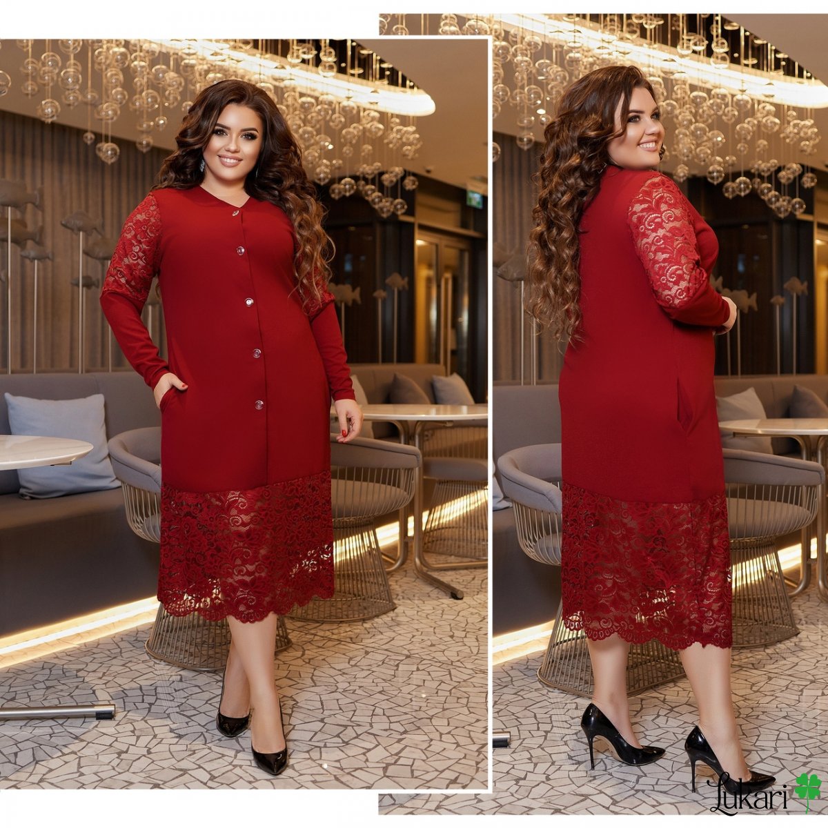 Плаття великого розміру подовжене бордове, креп-дайвінг ДМЛК 889-1