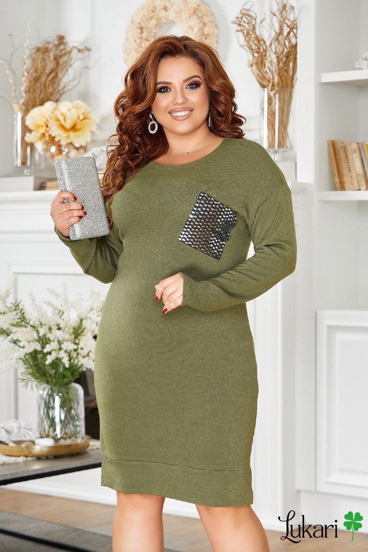 Плаття великого розміру колір хакі, ангора софт ВРВШ 063-4