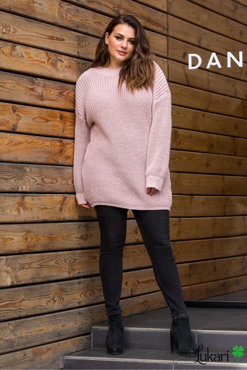 Туніка-плаття великого розміру пудровий кольорір, шерсть і акрил ШАУГ 1466-6